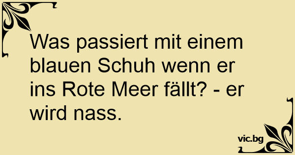 Was passiert mit einem blauen Schuh wenn er ins Rote Meer fällt? - er wird nass.