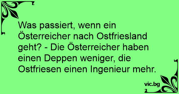 Was passiert, wenn ein Österreicher nach Ostfriesland geht? - Die Österreicher haben einen Deppen weniger, die Ostfriesen einen Ingenieur mehr.