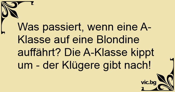 Was passiert, wenn eine A-Klasse auf eine Blondine auffährt? Die A-Klasse kippt um - der Klügere gibt nach!