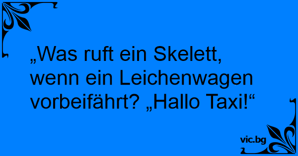 „Was ruft ein Skelett, wenn ein Leichenwagen vorbeifährt? „Hallo Taxi!“