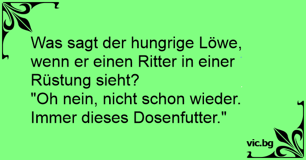 Was sagt der hungrige Löwe, wenn er einen Ritter in einer Rüstung sieht?