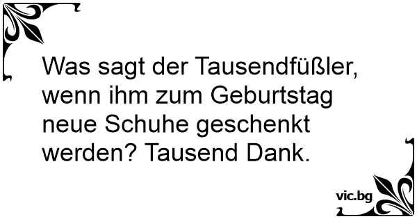 Was sagt der Tausendfüßler, wenn ihm zum Geburtstag neue Schuhe geschenkt werden? Tausend Dank.