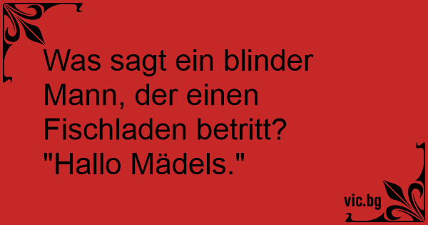 Kommt ein Blinder in einen Fischladen. Dann sagt er: "Hi Mädels!"