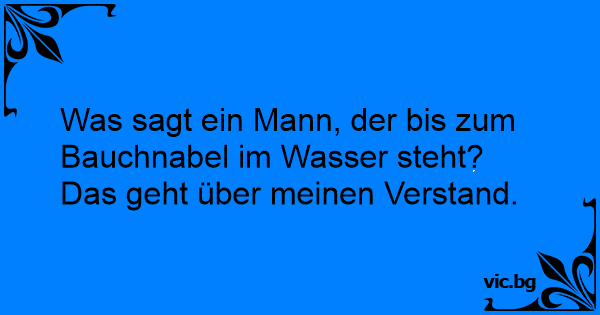 Was sagt ein Mann, der bis zum Bauchnabel im Wasser steht?