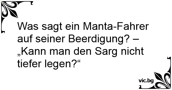 Was sagt ein Manta-Fahrer auf seiner Beerdigung? – „Kann man den Sarg niсhт tiefer legen?“