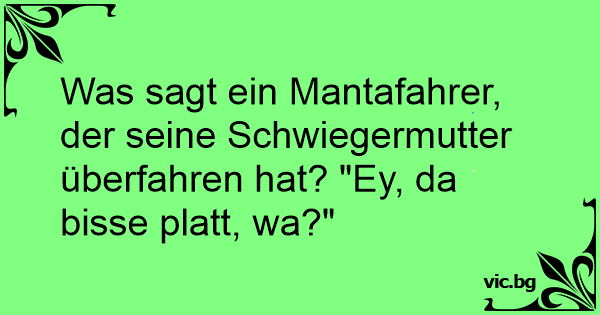 Was sagt ein Mantafahrer, der seine Schwiegermutter überfahren hat? "Ey, da bisse platt, wa?"