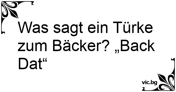 Was sagt ein Türke zum Bäcker? „Back Dat“