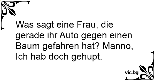 Was sagt eine Frau, die gerade ihr Auto gegen einen Baum gefahren hat? Manno, Ich hab doch gehupt.