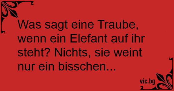 Was sagt eine Traube, wenn ein Elefant auf ihr steht? Nichts, sie weint nur ein bisschen...