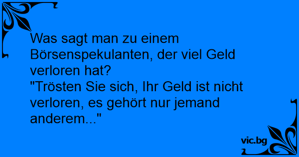 Was sagt man zu einem Börsenspekulanten, der viel Geld verloren hat?