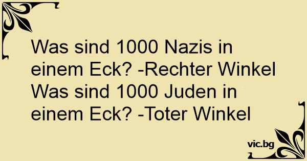 Was sind 1000 Nazis in einem Eck? -Rechter Winkel Was sind 1000 Juden in einem Eck? -Toter Winkel