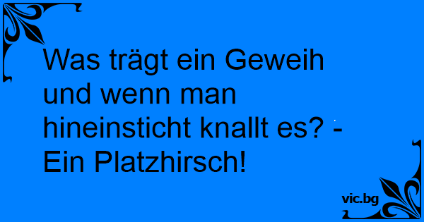 Was trägt ein Geweih und wenn man hineinsticht knallt es? - Ein Platzhirsch!