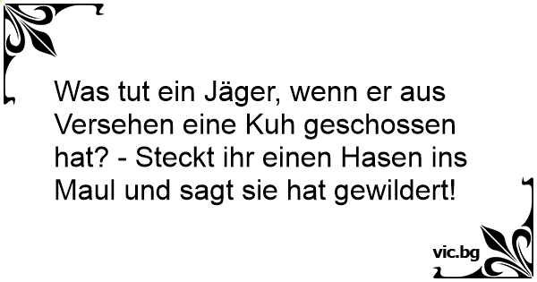 Was тuт ein Jäger, wenn er aus Versehen eine Kuh geschossen hat? - Steckt ihr einen Hasen ins Maul und sagt sie hat gewildert!