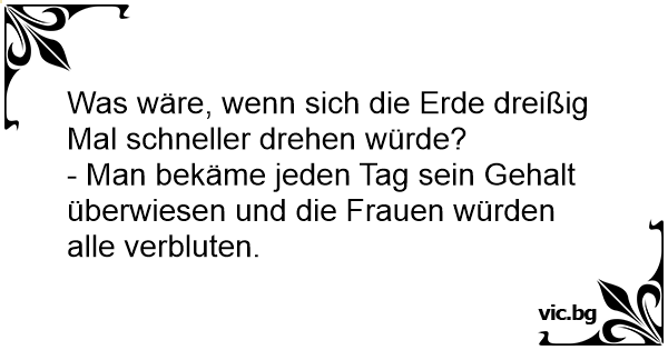 - Mi történne ha a Föld 30-szor gyorsabban forogna? - ??? - A nők elvéreznének mi meg minden nap kapnánk fizetést.