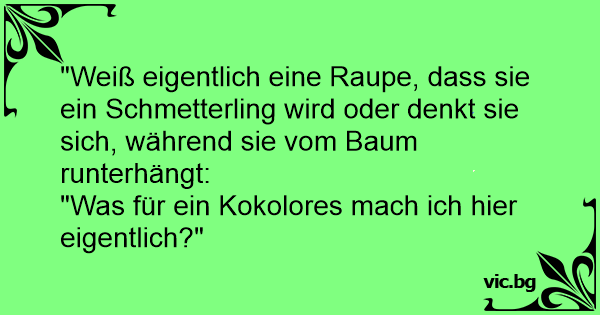 "Weiß eigentlich eine Raupe, dass sie ein Schmetterling wird oder denkt sie sich, während sie vom Baum runterhängt: