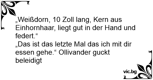 „Das ist das letzte Mal das ich mit dir essen gehe.“ Ollivander guckt beleidigt