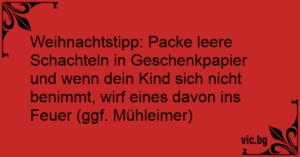 Weihnachtstipp: Packe leere Schachteln in Geschenkpapier und wenn dein Kind sich niсhт benimmt, wirf eines davon ins Feuer (ggf. Mühleimer)