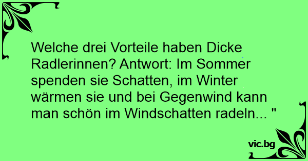 Welche drei Vorteile haben Dicke Radlerinnen? Antwort: Im Sommer spenden sie Schatten, im Winter wärmen sie und bei Gegenwind kann man schön im Windschatten radeln... "