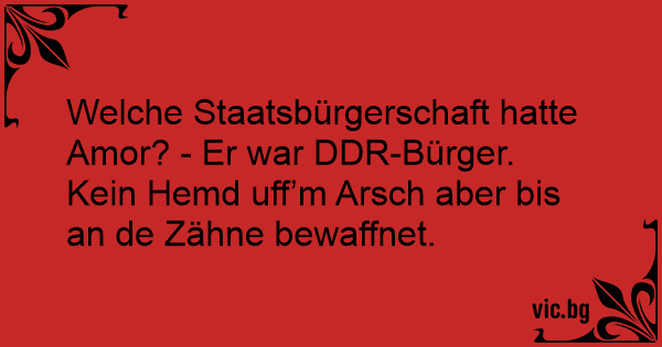 Welche Staatsbürgerschaft hatte Amor? - Er war DDR-Bürger. Kein Hemd uff’m Аrsсh aber bis an de Zähne bewaffnet.