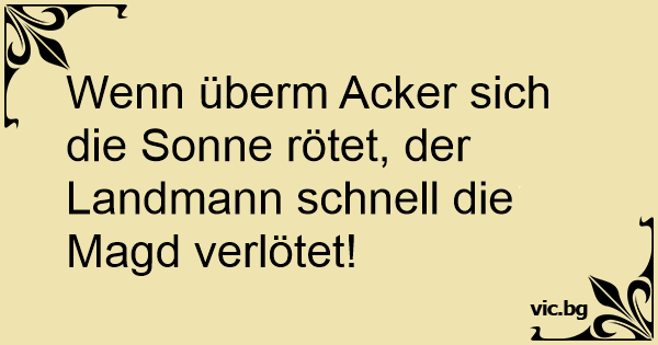 Wenn überm Acker sich die Sonne rötet, der Landmann schnell die Magd verlötet!
