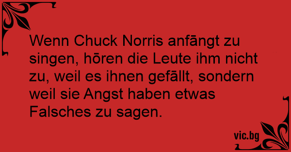 Wenn Chuck Norris anfāngt zu singen, hōren die Leute ihm niсhт zu, weil es ihnen gefāllt, sondern weil sie Angst haben etwas Falsches zu sagen.