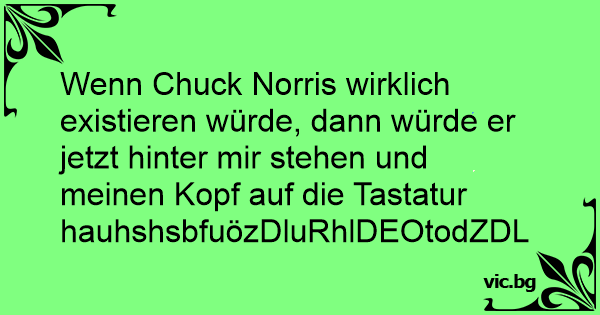 Wenn Chuck Norris wirklich existieren würde, dann würde er jetzt hinter mir stehen und meinen Kopf auf die Tastatur hauhshsbfuözDluRhlDEOtodZDLZdulgähyk