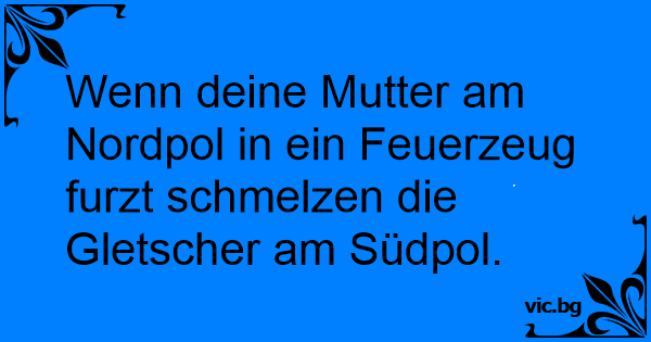 Wenn deine Mutter am Nordpol in ein Feuerzeug furzt schmelzen die Gletscher am Südpol.