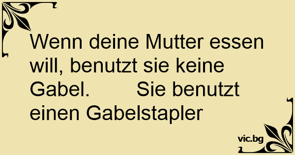 Wenn deine Mutter essen will, benutzt sie keine Gabel. Sie benutzt einen Gabelstapler