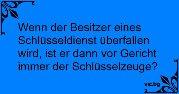 Wenn der Besitzer eines Schlüsseldienst überfallen wird, ist er dann vor Gericht immer der Schlüsselzeuge?