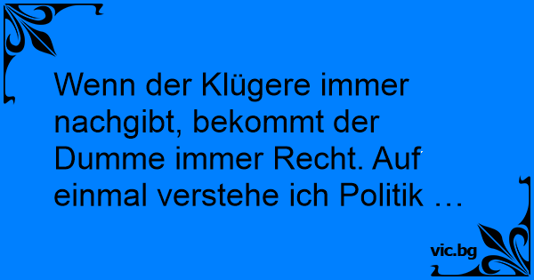 Wenn der Klügere immer nachgibt, bekommt der Duмме immer Recht. Auf einmal verstehe ich Politik …