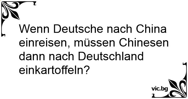 Wenn Deutsche nach China einreisen, müssen Chinesen dann nach Deutschland einkartoffeln?