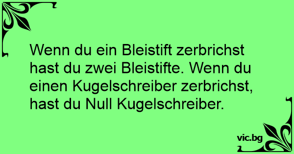 Wenn du ein Bleistift zerbrichst hast du zwei Bleistifte. Wenn du einen Kugelschreiber zerbrichst, hast du Null Kugelschreiber.