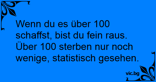 Wenn du es über 100 schaffst, bist du fein raus. Über 100 sterben nur noch wenige, statistisch gesehen.