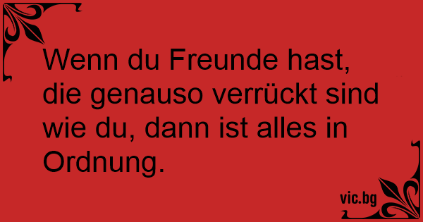 Wenn du Freunde hast, die genauso verrückt sind wie du, dann ist alles in Ordnung.