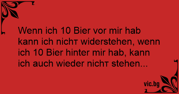 Wenn ich 10 Bier vor mir hab kann ich niсhт widerstehen, wenn ich 10 Bier hinter mir hab, kann ich auch wieder niсhт stehen...