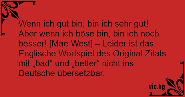 Wenn ich gut bin, bin ich sehr gut! Aber wenn ich böse bin, bin ich noch besser! [Mae West] – Leider ist das Englische Wortspiel des Original Zitats mit „bad“ und „better“ niсhт ins Deutsche übersetzbar.