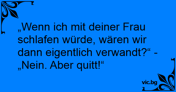 „Wenn ich mit deiner Frau schlafen würde, wären wir dann eigentlich verwandt?“ - „Nein. Aber quitt!“