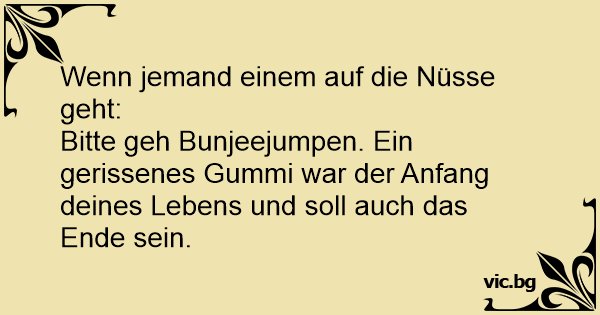 Bitte geh Bunjeejumpen. Ein gerissenes Gummi war der Anfang deines Lebens und soll auch das Ende sein.