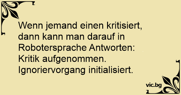 Wenn jemand einen kritisiert, dann kann man darauf in Robotersprache Antworten: