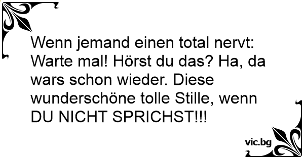 Warte mal! Hörst du das? Ha, da wars schon wieder. Diese wunderschöne tolle Stille, wenn DU NIСНТ SPRICHST!!!