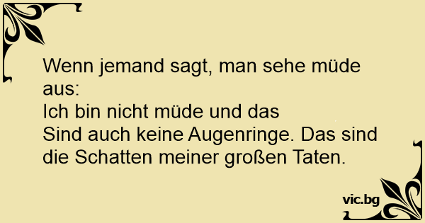 Sind auch keine Augenringe. Das sind die Schatten meiner großen Taten.