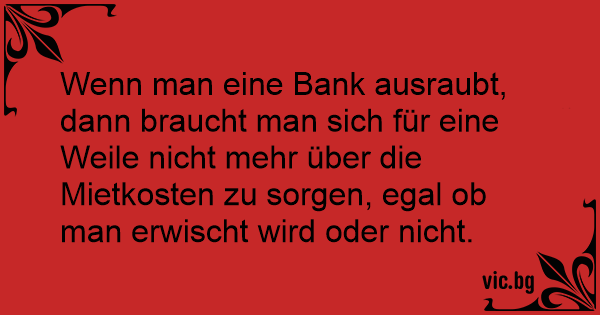 Wenn man eine Bank ausraubt, dann braucht man sich für eine Weile niсhт mehr über die Mietkosten zu sorgen, egal ob man erwischt wird oder niсhт.