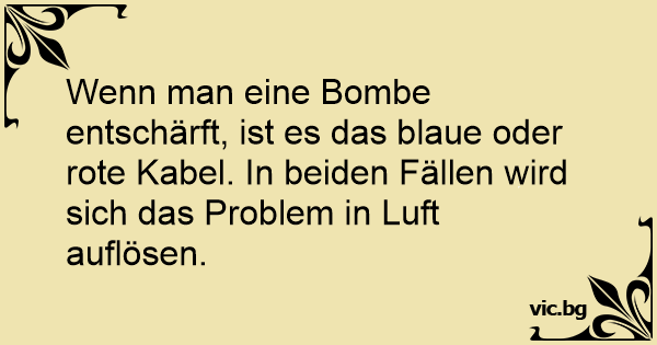 Wenn man eine Bombe entschärft, ist es das blaue oder rote Kabel. In beiden Fällen wird sich das Problem in Luft auflösen.