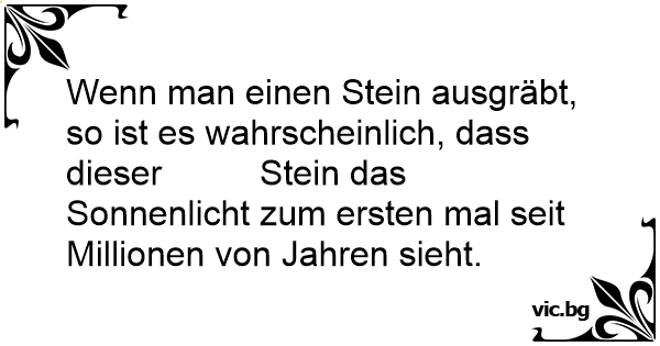 Wenn man einen Stein ausgräbt, so ist es wahrscheinlich, dass dieser Stein das Sonnenlicht zum ersten mal seit Millionen von Jahren sieht.