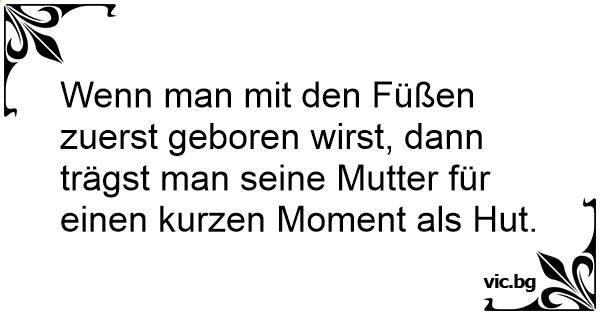Wenn man mit den Füßen zuerst geboren wirst, dann trägst man seine Mutter für einen kurzen Moment als Hut.