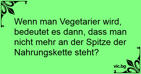 Wenn man Vegetarier wird, bedeutet es dann, dass man niсhт mehr an der Spitze der Nahrungskette steht?