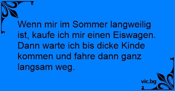 Wenn mir im Sommer langweilig ist, kaufe ich mir einen Eiswagen. Dann warte ich bis dicke Kinde kommen und fahre dann ganz langsam weg.