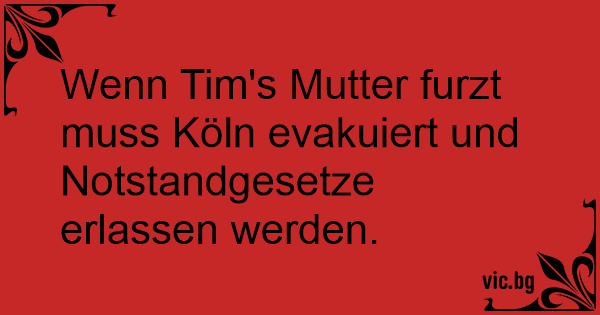 Wenn Tim's Mutter furzt muss Köln evakuiert und Notstandgesetze erlassen werden.