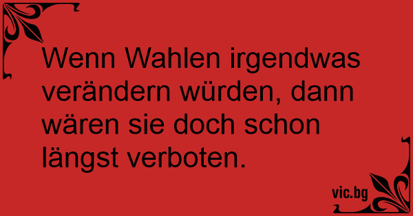 Wenn Wahlen irgendwas verändern würden, dann wären sie doch schon längst verboten.