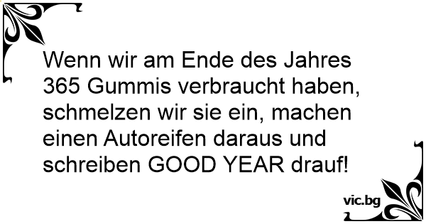 Wenn wir am Ende des Jahres 365 Gummis verbraucht haben, schmelzen wir sie ein, machen einen Autoreifen daraus und schreiben GOOD YEAR drauf!